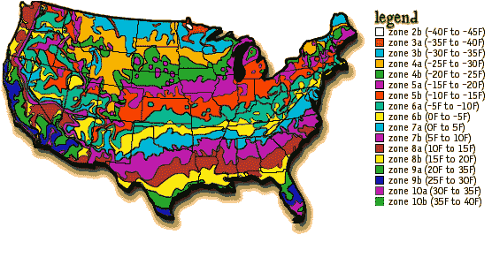hardiness zones. This divides the United States into 11 zones (1-11), characterized